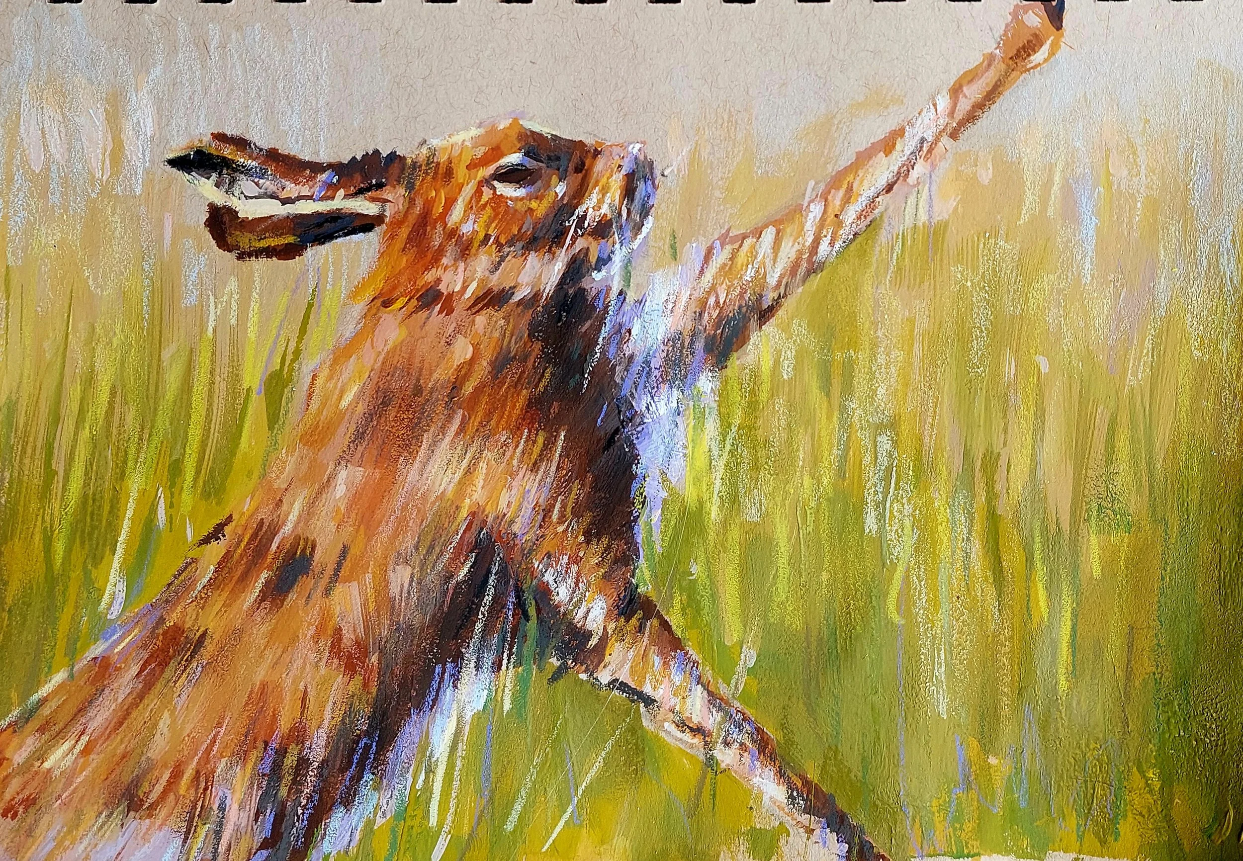 This dynamic, expressive piece captures a hare “boxing” which is the done during the mating season from January through to April or even early summer.